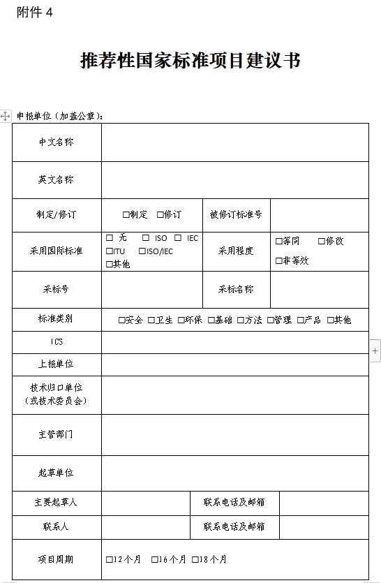 本次征集计划包括国家标准和行业标准,申报项目应当完成前期研制工作,形成较为成熟的标准草案,保证立项后在规定期限内能够完成审查和报批工作。具体要求如下: