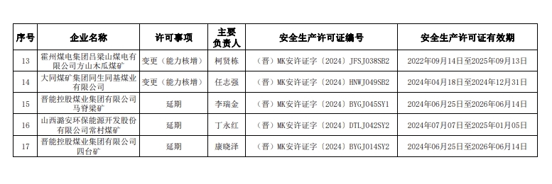 山西省应急管理厅关于颁发煤矿(企业)安全生产许可证的公告