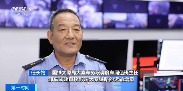 国铁太原局大秦车务段调度车间值班主任 任长站:卸车成效直接影响大秦铁路的运输增量。接下来,当电煤集中到达时,我们通过掌握列车到达计划,提前谋划场存、垛位情况,提前安排卸车、优化卸车方式等,最大化释放港口卸车能力,确保电煤卸车不积压。
