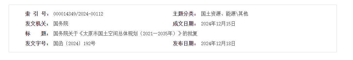 国务院关于《太原市国土空间总体规划(2021—2035年)》的批复