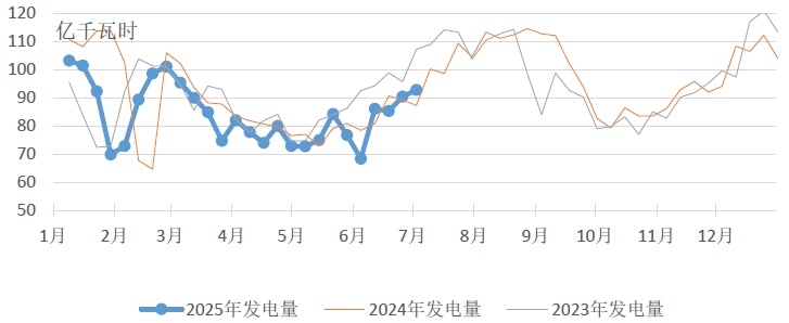 根据中电联电力行业燃料统计,截至7月3日,纳入统计的发电集团燃煤电厂本月累计发电量同比增加6.3%,本年累计发电量同比减少5.2%。燃煤电厂耗煤量本月累计同比增加3.3%,本年累计同比减少5.5%。燃煤电厂煤炭库存低于去年同期23万吨,库存可用天数较上年同期升高0.3天。
