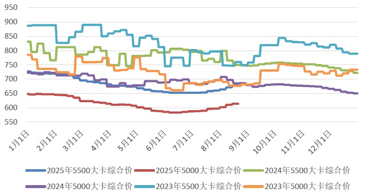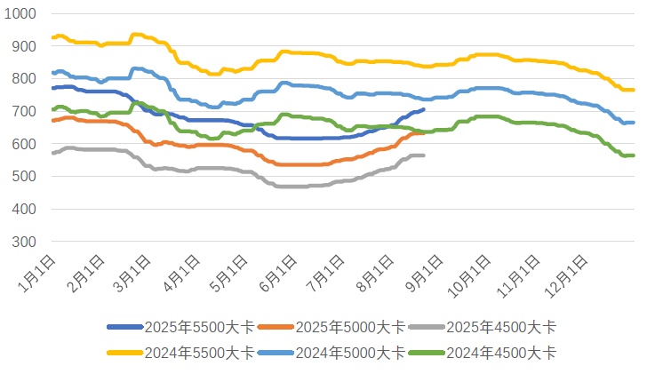 本周,受天气变化影响,火电企业整体发电量小幅回落;部分主产地遭遇极端天气叠加产能核查、安全监察等政策约束,煤炭供应增量受限。需求阶段性回落,叠加调价煤矿数量增加及大型集团车板外购价格下行等因素影响,市场交易情绪显著降温,终端用户及贸易商采购节奏普遍放缓,港口中低卡煤种报价维稳运行,仅高卡煤因结构性供需矛盾延续涨势,临近周末港口现货价格出现松动迹象。后期来看,尽管部分区域仍存高温天气,但整体呈现范围收缩、强度减弱的态势,叠加当前电厂库存高位水平,电力需求将逐步进入季节性转弱阶段。8月下旬,部分主产地仍将遭遇降雨天气,叠加月度生产任务收尾、产能核查、安全监察等政策因素影响,煤炭供应预计难有显著提升。此外,重大活动对部分区域高耗能行业生产的制约影响预计将超过其对主产地生产端的影响。综合判断,短期内电煤市场将呈现供需双弱格局,终端维持以长协兑现及市场刚需采购补库为主;预计现货价格将呈弱稳走势,部分坑口价格仍存在回调空间。建议继续做好中长期合同履约,保持适量刚需现货采购,通过优化库存结构等措施防范风险,同时密切关注政策与天气变化,动态调整采购策略,保障电力供应安全。