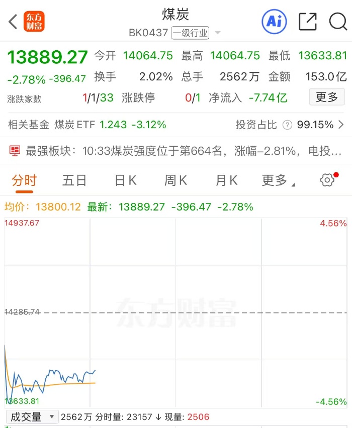 3月4日,煤炭板块开盘下挫,4只个股跌幅超8%。前一个交易日,煤炭指数逆势上涨,choice数据显示,3月3日煤炭指数上涨2.77%。市场观点认为,油价的上涨,开始传导至煤炭价格,海外动力煤价格上涨,虽然国内供需影响不大,尤其是焦煤,但前期盘面连续调整后,估值较低,预计后期震荡上行。