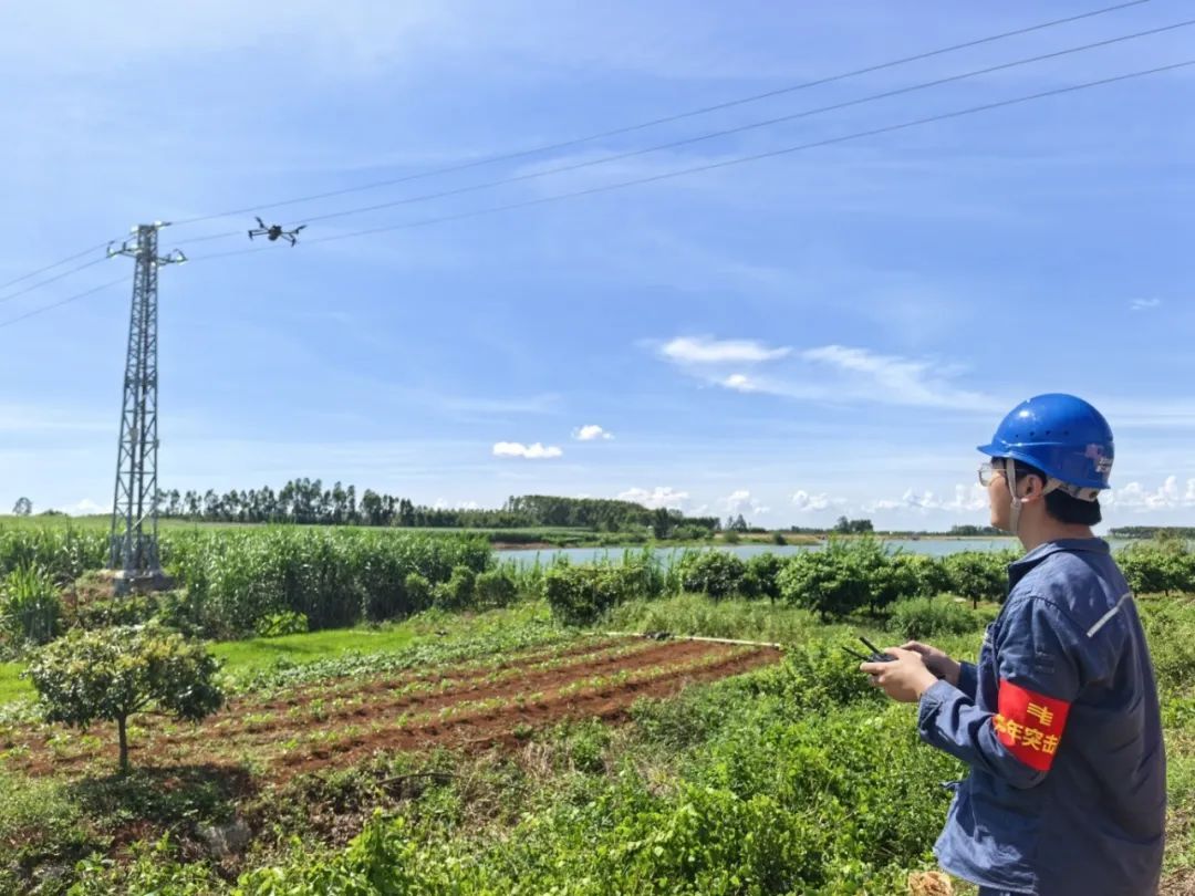 南方电网广东湛江遂溪供电局青年突击队队员用无人机开展线路巡视。(陈娴 摄)