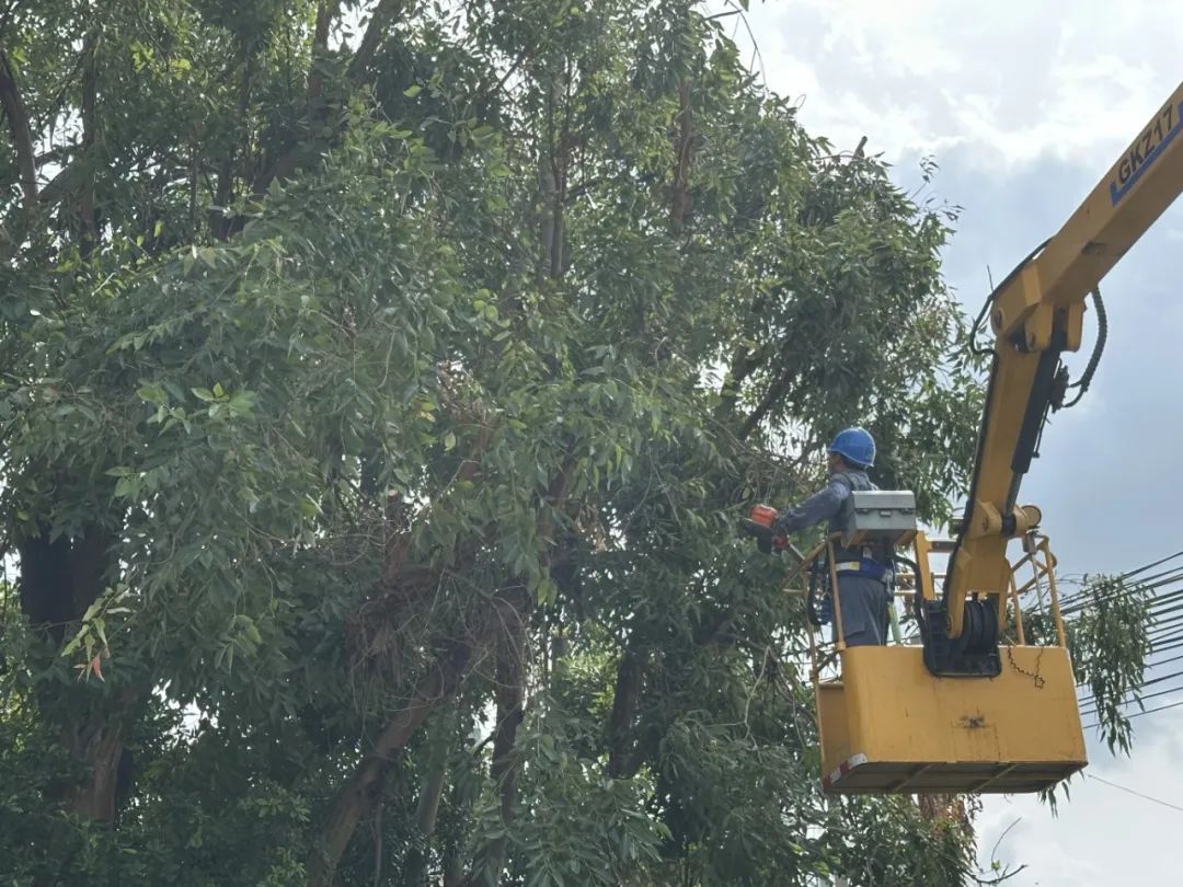 南方电网广东湛江吴川供电局工作人员开展清理树障和飘挂物工作。(杜依蔓)