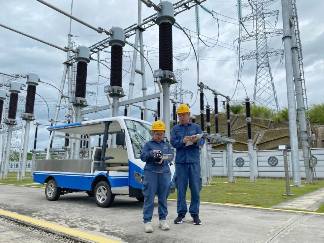 南方电网广东梅州供电局变电二所运维人员对500千伏敬州变电站内设备开展特巡特维。(徐子兴)