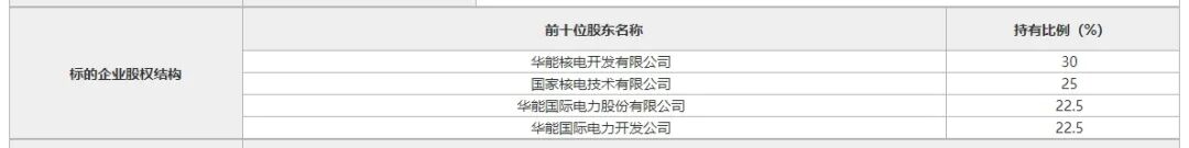 1月16日,北京产权交易所披露了《华能石岛湾核电开发有限公司20%股权》产权转让信息。目前,华能石岛湾核电开发有限公司股权结构为:华能核电开发有限公司持股30%,国家核电技术有限公司持股25%,华能国际电力股份有限公司持股22.5%,华能国际电力开发公司持股22.5%。