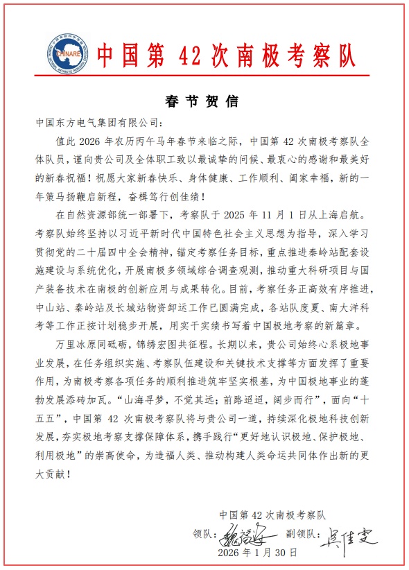 未来,东方电气集团将牢记“国之大者”,紧扣服务国家战略需求,扎实做好相关工作,持续为我国极地科学考察事业贡献“东方力量”。