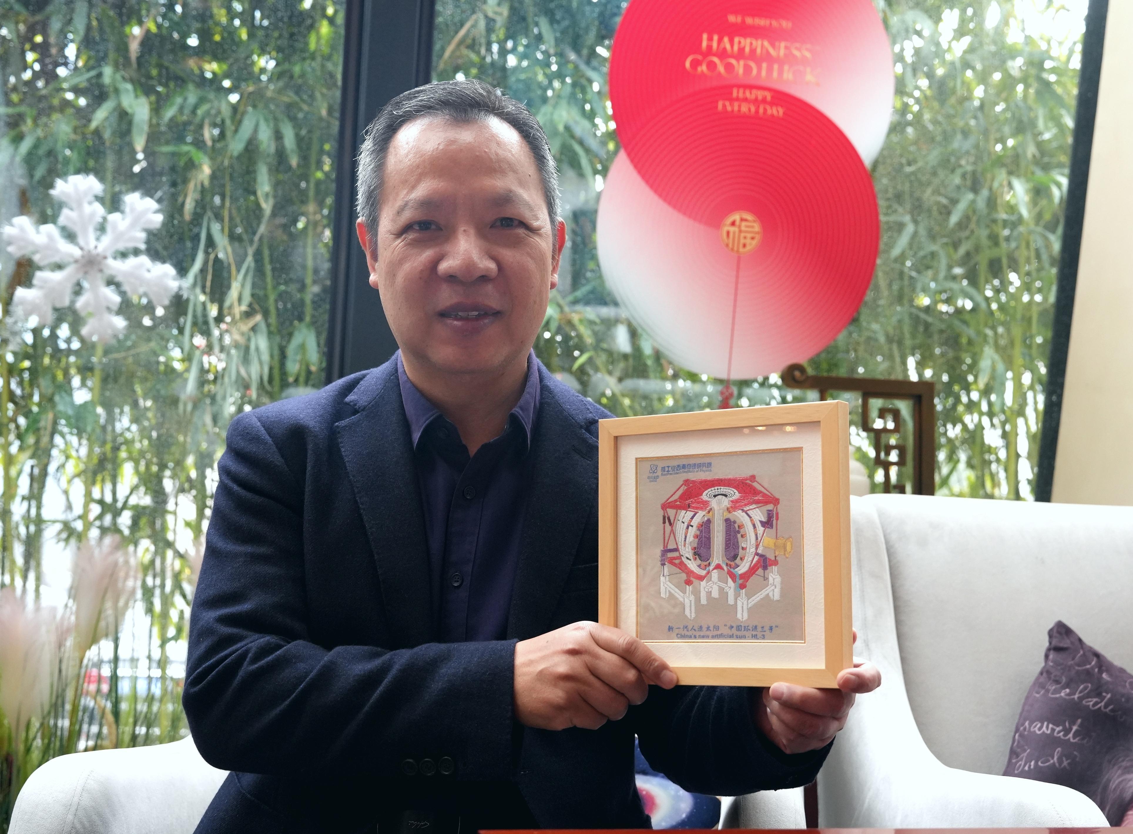 此刻,它正静静摆放在全国政协委员、中核集团核聚变领域首席科学家段旭如房间的桌上。来京参加全国两会的段旭如,把这幅作品作为重要“教具”,用来为来访者介绍“人造太阳”。