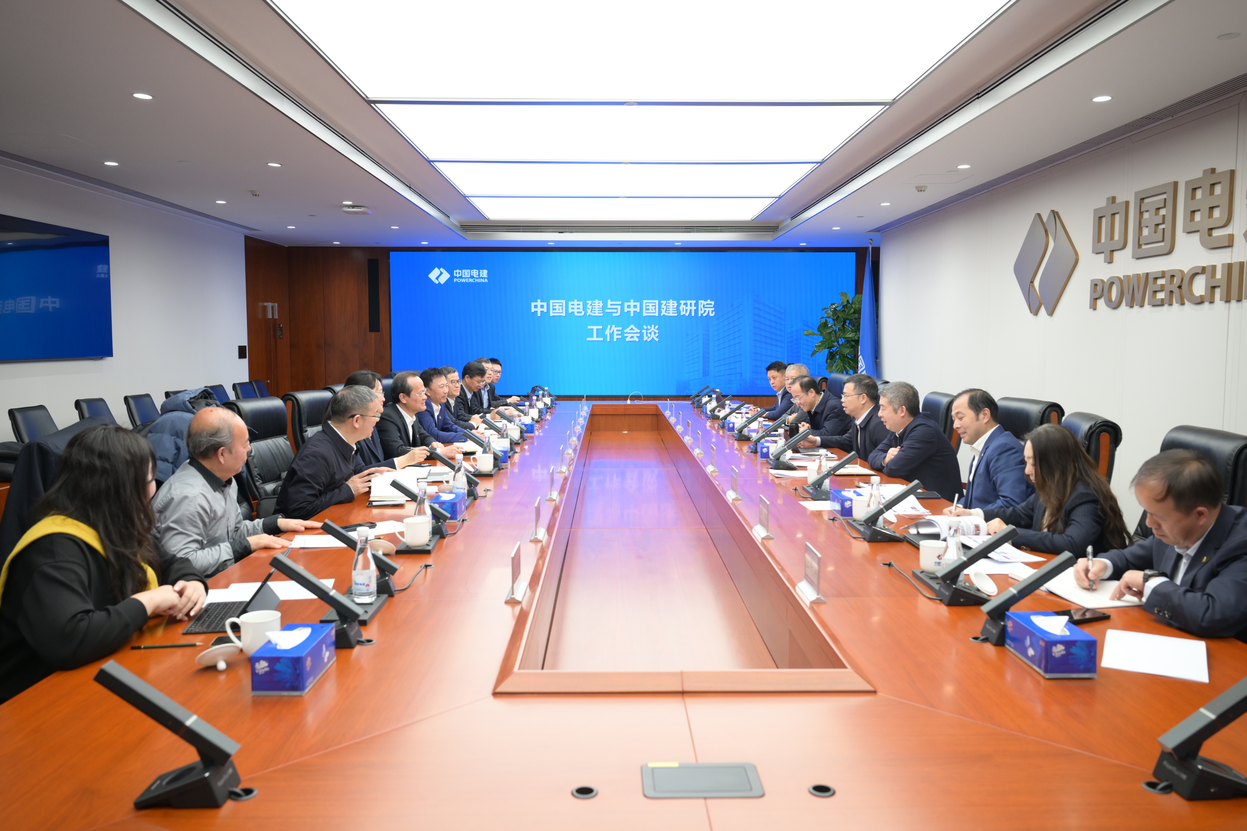 陈观福对中国建研院长期以来给予中国电建的大力支持表示感谢,介绍了公司整体发展及国际业务开展情况。他表示,中国电建始终牢牢把握新时代新征程国资央企责任使命,积极服务国家重大战略,坚定不移推进战略转型和高质量发展。中国建研院作为全国建筑行业最大综合性研发机构,技术实力雄厚、专业优势突出。双方业务互补性强,协同契合度高,合作前景广阔。希望进一步加强沟通对接,增进战略互信,发挥各自优势,聚焦智能建造装备、新材料与新能源、绿色低碳与建筑设计、国际业务等领域深化合作,共同落实好战略合作协议,促进优势互补,实现合作共赢。