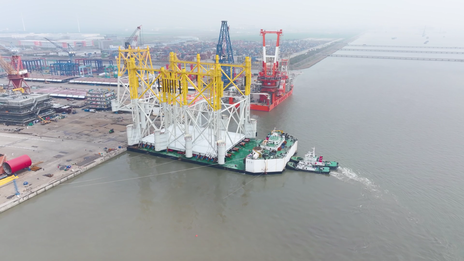 近日,全国首个海上风电海陆一体柔性直流输电工程——阳江三山岛工程迎来关键节点:重达1.36万吨的海上换流站导管架,成功完成从陆地到运输船的转运作业。蔡思浩黄昕摄影报道