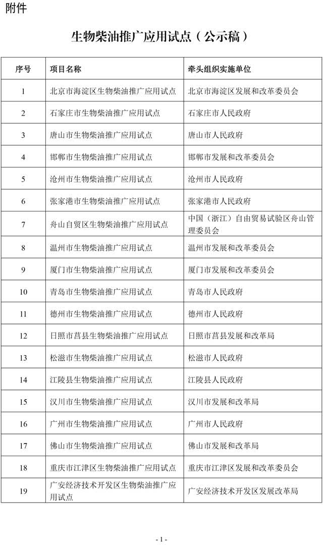 附件:生物柴油推广应用试点(公示稿)