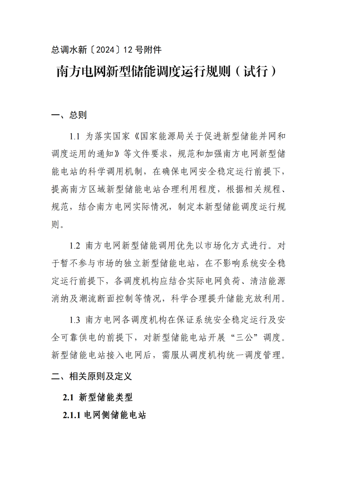 附件:南方电网新型储能调度运行规则(试行)