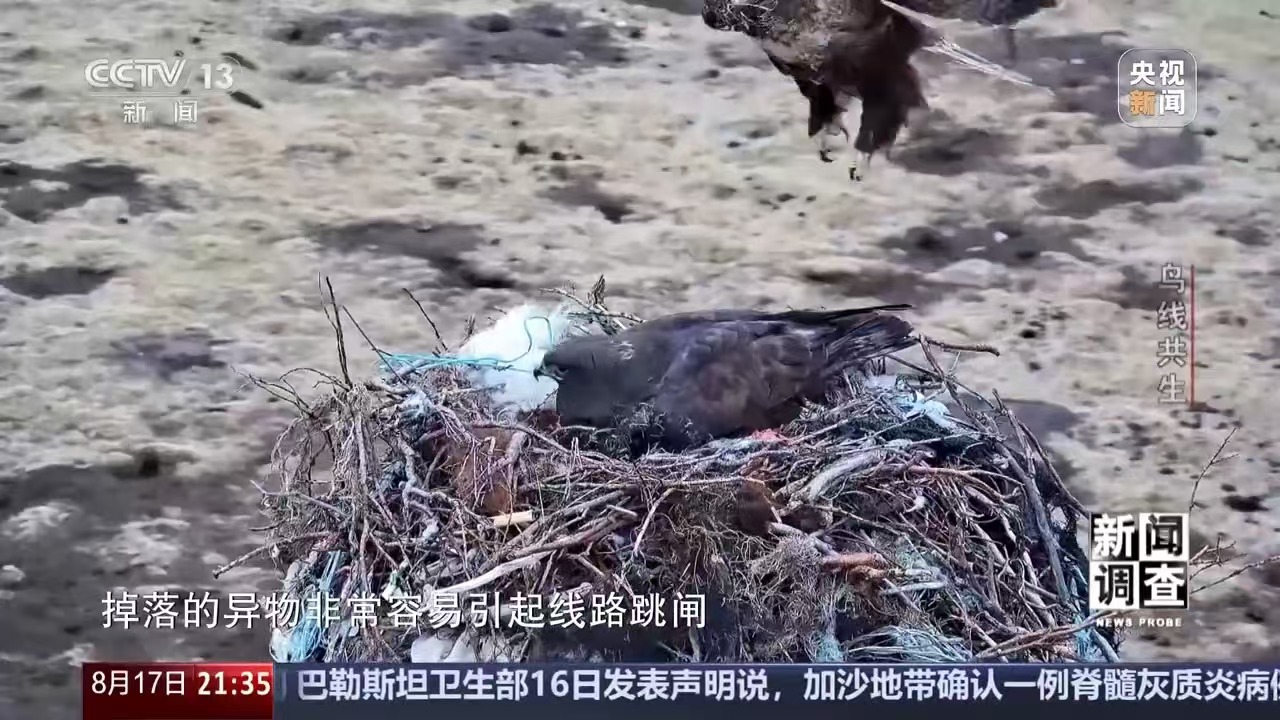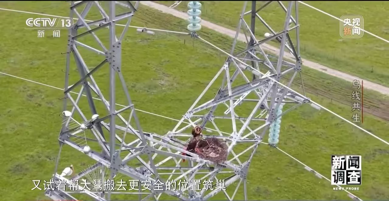 近年来,随着青藏高原电网建设,铁塔、电网等电力设备在过去人迹罕至的三江源地区拔地而起,连绵延伸。大型鸟类捕食需要广阔的视野,高达数十米的输电杆塔就成了鸟类栖息筑巢的理想之处。