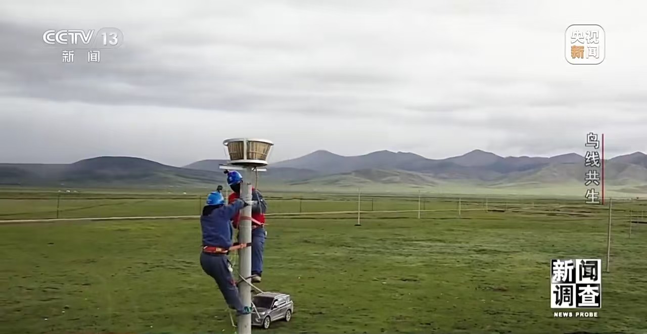 原国网玉树供电公司运维人员 徐文琪:只要鸟不在我们的线路上落了,这个线路就平稳运行了,我们的老百姓就可以正常用电,当时出于这个想法,我们装驱鸟器。刚开始两三个月的时候是有效果,几个月以后大鵟也适应了。因为这里的紫外线比较强,驱鸟器时间一长比较脆,大鵟在落的时候就容易将驱鸟器击落下来。