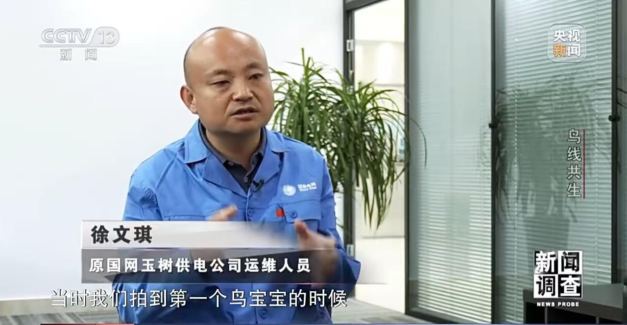原国网玉树供电公司运维人员 徐文琪:装了第一个点,我们大概做了十天以后,发现有筑巢的。过了两三个月,应该是七八月份,当时我们拍到第一个鸟宝宝的时候特别兴奋。因为当时孵出鸟宝宝的时候,大家很多人参与到这个过程当中,大家一看新的生命孵化出来以后,大家都特别激动。