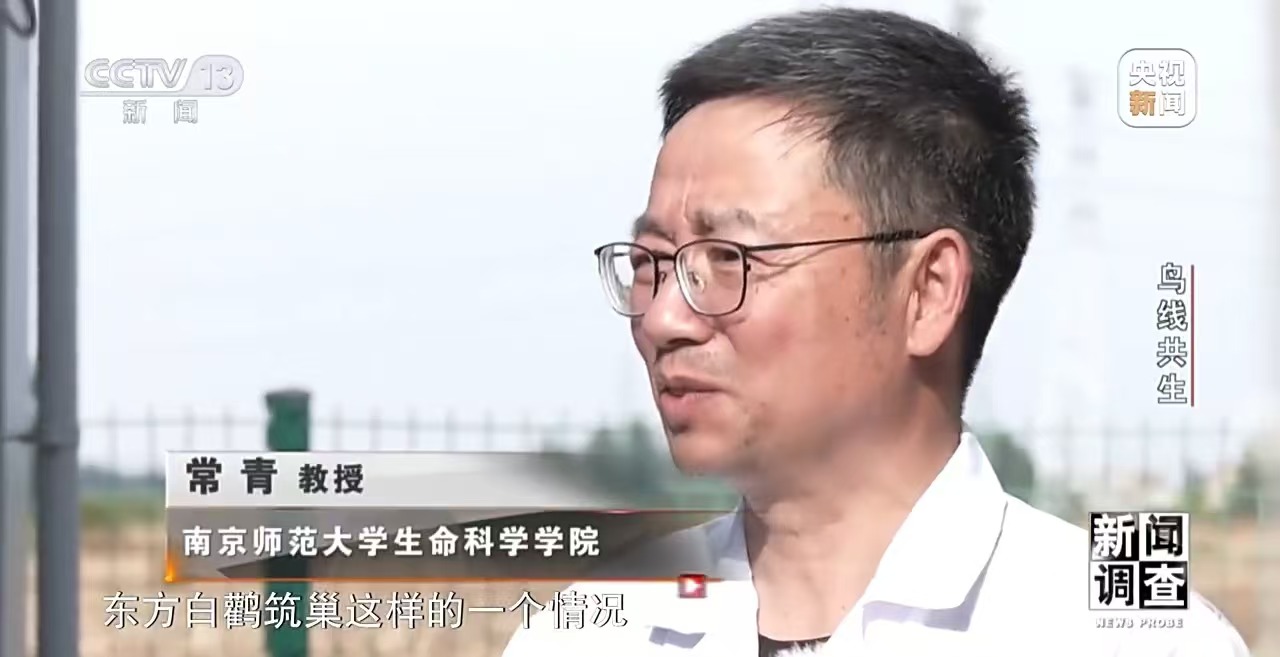 南京师范大学生命科学学院教授 常青:这几年我们一直跟踪这里的救助情况,一直跟他们做交流。其实供电部门他们在日常工作中就关注到在电网上东方白鹳筑巢的情况。有时候为什么突然不在了,说不定是出现意外了。他们给我们报告了好多。比方说小鸟,特别是这里有一个巢,原来是三只小鸟,突然变成两只了,还有一只哪里去了?其实很有可能就是这三只小鸟在巢上,亲鸟过来喂食的时候,它们有一个争抢,一不小心它从巢中掉下来了。这个时候掉下来对小鸟是致命的。它没有觅食的能力,还是靠亲鸟来育雏,属于雏鸟阶段。所以如果它一旦掉下来,在这个时候我们不救助,作为鸟类它可能就会死亡。