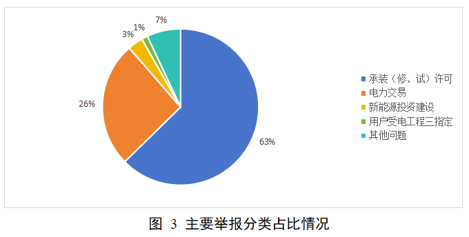2025年1月,12398能源监管热线平台接收举报线索158个。其中,承装(修、试)许可问题线索99件、电力交易问题线索41件、新能源投资建设问题线索5件、用户受电工程“三指定”问题线索2件、其他问题线索11件。