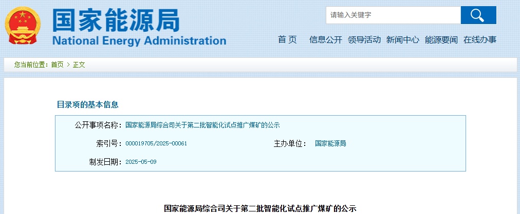 国家能源局综合司关于第二批智能化试点推广煤矿的公示