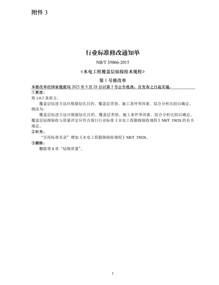 根据《中华人民共和国标准化法》《能源标准化管理办法》,国家能源局批准《注蒸汽用高温起泡剂评价方法》等307项能源行业标准(附件1)、《Standard for quality of biomethane》等35项能源行业标准外文版(附件2)、《水电工程覆盖层钻探技术规程》等3项能源行业标准修改通知单(附件3),现予以发布。