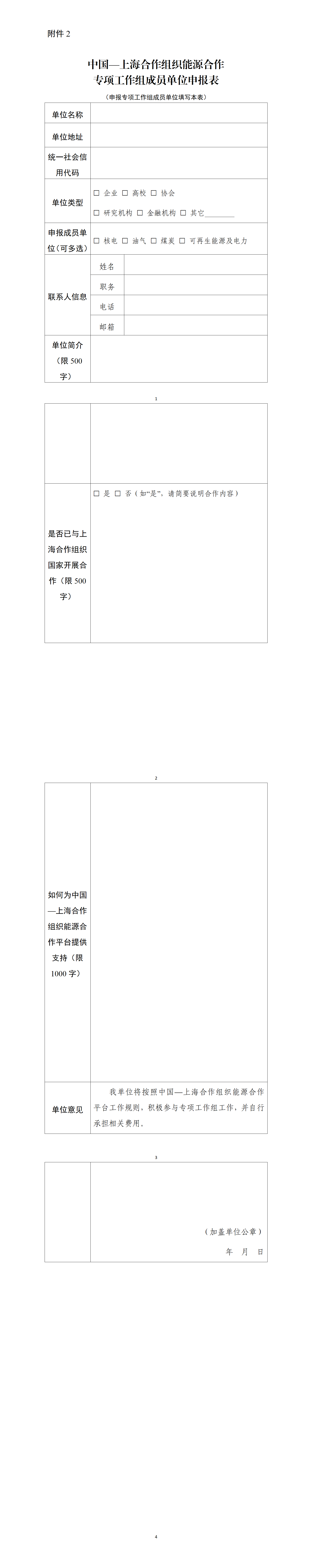 2. 中国—上海合作组织能源合作专项工作组成员单位申报表