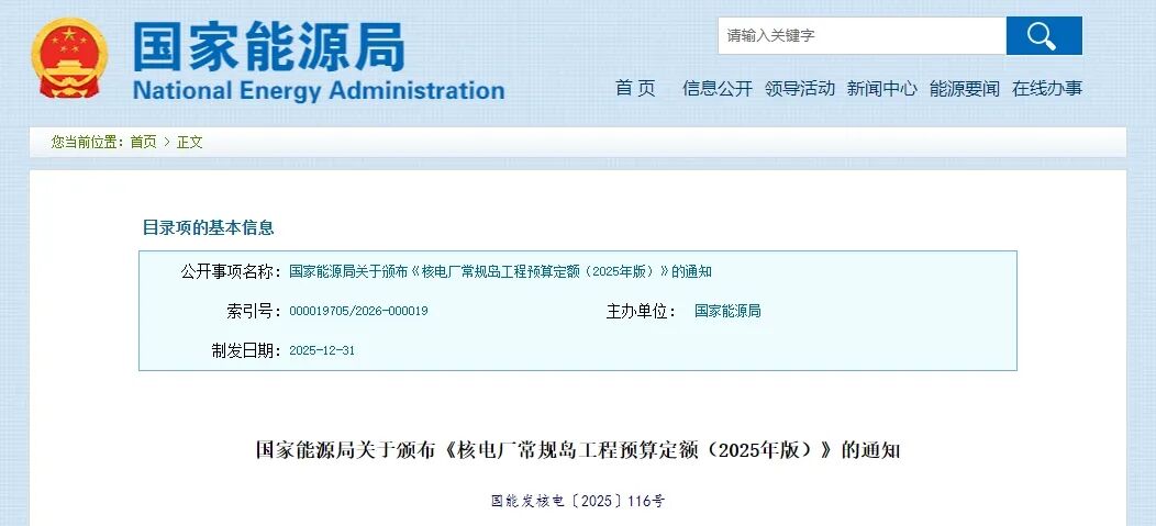 国家能源局关于颁布《核电厂常规岛工程预算定额(2025年版)》的通知