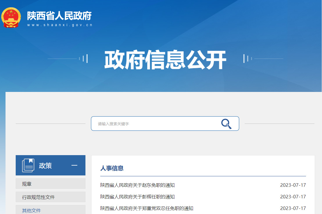 7月17日,陕西省人民政府网站发布一批人事任免通知。
