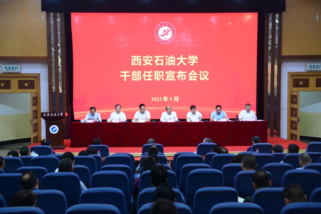 9月15日上午,西安石油大学召开干部大会,宣布省委关于学校干部任免的决定。陕西省委决定:常江同志任西安石油大学党委委员、书记;张君涛同志任西安石油大学党委委员,为西安石油大学副校长人选。免去赛云秀同志西安石油大学党委书记、委员职务;免去李天太同志西安石油大学党委副书记、委员职务,不再担任西安石油大学校长。