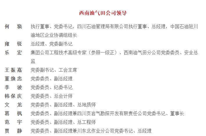 近日,西南油气田官网发布消息:李波任西南油气田党委委员、纪委书记,贾静任西南油气田党委委员、副总经理兼川东北作业分公司党委书记、总经理。