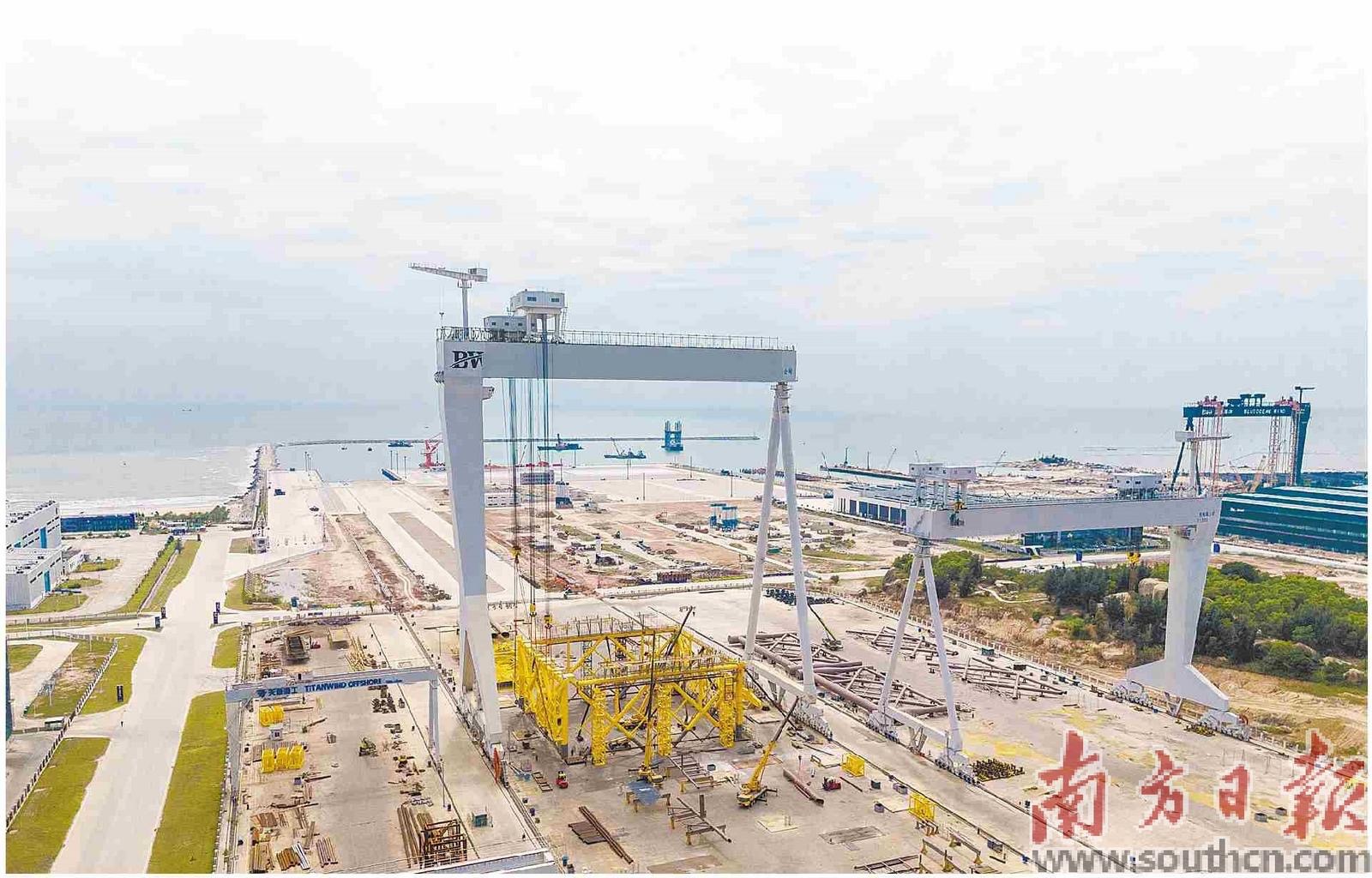 国家电投揭阳海洋牧场支腿式(桁架式)重型网箱平台项目是揭阳市首个现代化风渔融合项目。该项目于2024年7月正式启动,网箱平台由上、下段主体结构和上建平台三部分组成;完成上段合龙后,将继续进行下段合龙、上建吊装、上下段大组、网衣安装等环节,预计明年5月实现投产。网箱平台集成了饲料存储与投放、活鱼捕捞、网衣清洗、渔场监控以及光伏、风力发电清洁能源供给等功能,可开展章红鱼等高经济价值鱼种的养殖示范与智能化管理,一个养殖周期预计产值达1亿元。(唐楚生 张冰纯 许创盛)