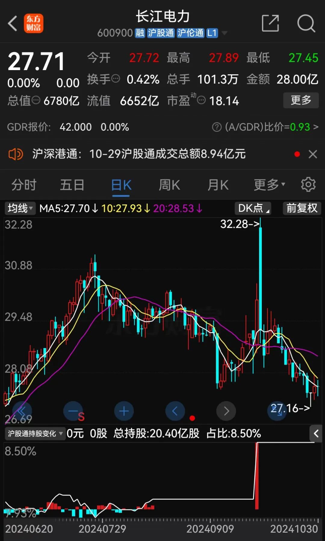 截至10月30日收盘,三峡能源、长江电力的总市值分别为1317亿元、6780亿元。