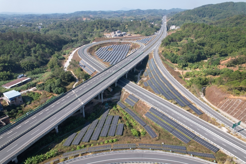 大塘至浦北段高速公路交能融合示范项目是广西首个“交能融合”零碳供能高速公路项目,已列入广西国资委2023年第一批重大投资项目库和广西交通运输厅2023年绿色交通试点项目。此次发电的2.31兆瓦分布式光伏发电单元,位于广西浦北县三合镇长安村,涉及5220块550Wp光伏组件,以自发自用结合余电上网的模式,接入大浦高速大茅垌隧道口。