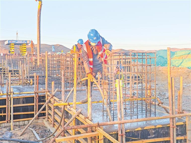 2月12日,在宁夏中卫市沙坡头区中能建沙坡头区麦垛山一期40万千瓦光伏项目建设现场,工人在钢筋绑扎。该项目可解决当地约800人就业,预计今年6月建成投用后,每年发电量达8.1亿度,相当于40万户家庭一年的用电量。(王文革)