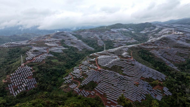3月10日,华能乌沙河下寨光伏项目15万千瓦全容量并网投产,成为西双版纳州目前装机容量最大的光伏电站,预计年发电量可达2亿千瓦时,每年可节约标准煤6.57万吨,减少二氧化碳排放16.38万吨。夕阳西下,光伏板反射的余晖将整个山谷染成了浪漫的金色,希望的田野正在蓬勃生长。