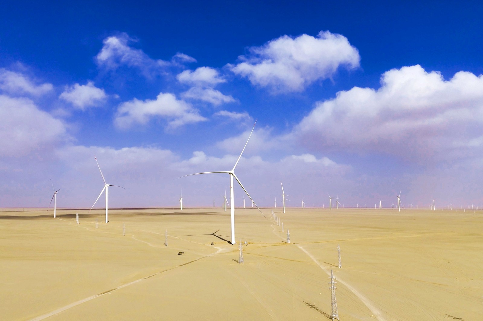 4月18日,青海公司国家第二批大基地大柴旦100万千瓦“风光储”项目其中30万千瓦风电项目48台风机已全部吊装完成。