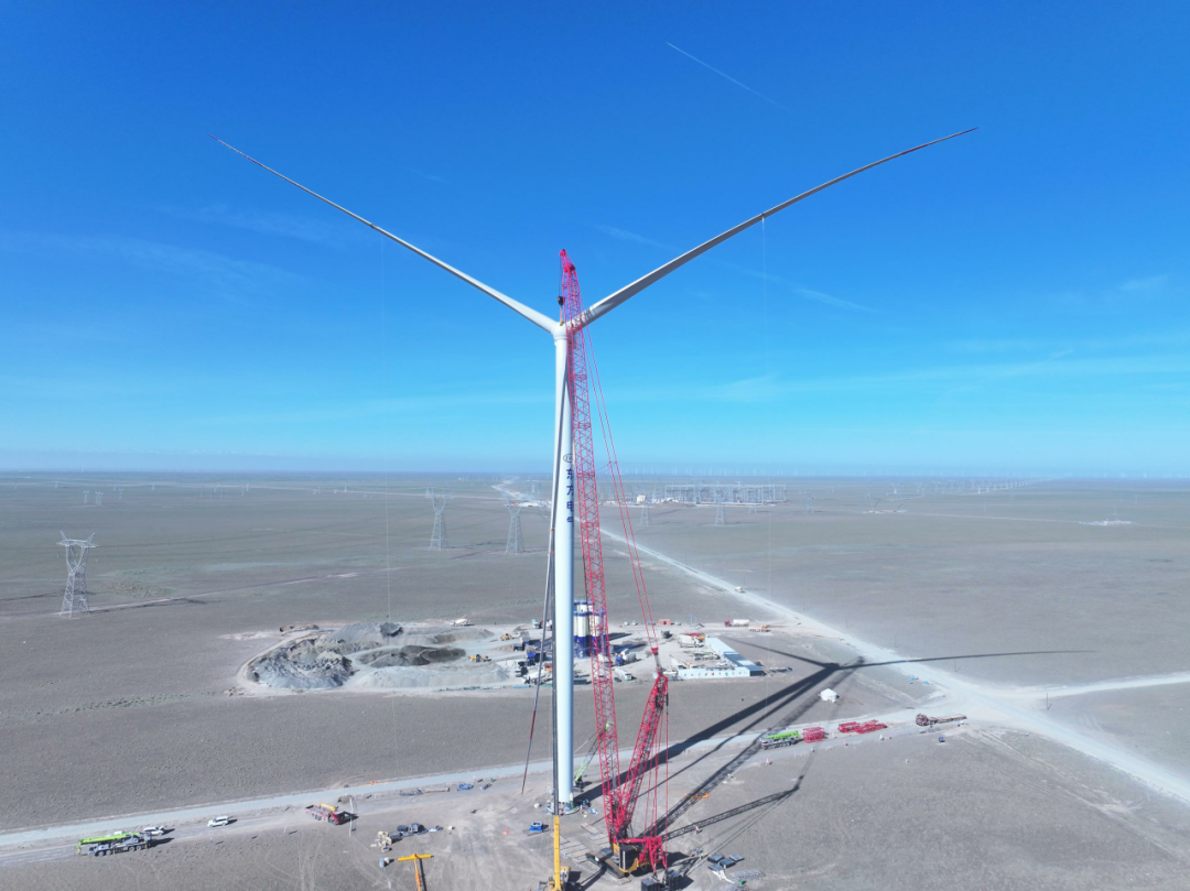 自今年3月7日开工以来,项目团队克服了气候寒冷、冰雪天气等困难,通过强化高空作业、设备运输等关键环节管控,筑牢安全生产防线,优化施工流程,确保150台风机“安装一台、调试一台、并网一台”,同时运用无人机巡检、智能运维系统,为机组全生命周期管理保驾护航。