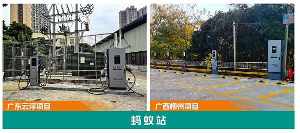 场站落地:从广东广州、湛江、云浮、罗定、阳江、茂名、汕头等区域,一路辐射至广西柳州、桂林、湖南长沙等地,充电网络覆盖公共快充、物流干线、县域乡村、电动重卡等多元场景。在公共快充领域,广东湛江金富微电网项目、茂名特来充重卡充电及配储项目及湖南安灿项目采用我司261kWh液冷储能设备及大功率分体式直流充电堆等核心产品,共同构筑起城乡协同、车桩网互融的智慧补能网。在电动重卡补能领域,广东罗定华润水泥一期项目采用“2套1250KVA变压器+8套320kW一体式双枪直流充电机”组合,为矿山重载电动化提供样板;广州花都梯面一期则引入2000KVA箱式变压器及6套320kW一体式双枪直流充电机,为新能源车辆补能做好基础设施建设。此外,“蚂蚁站”模式也在广东云浮和广西柳州落地生根,通过灵活布点解决了县域、乡镇充电难题。