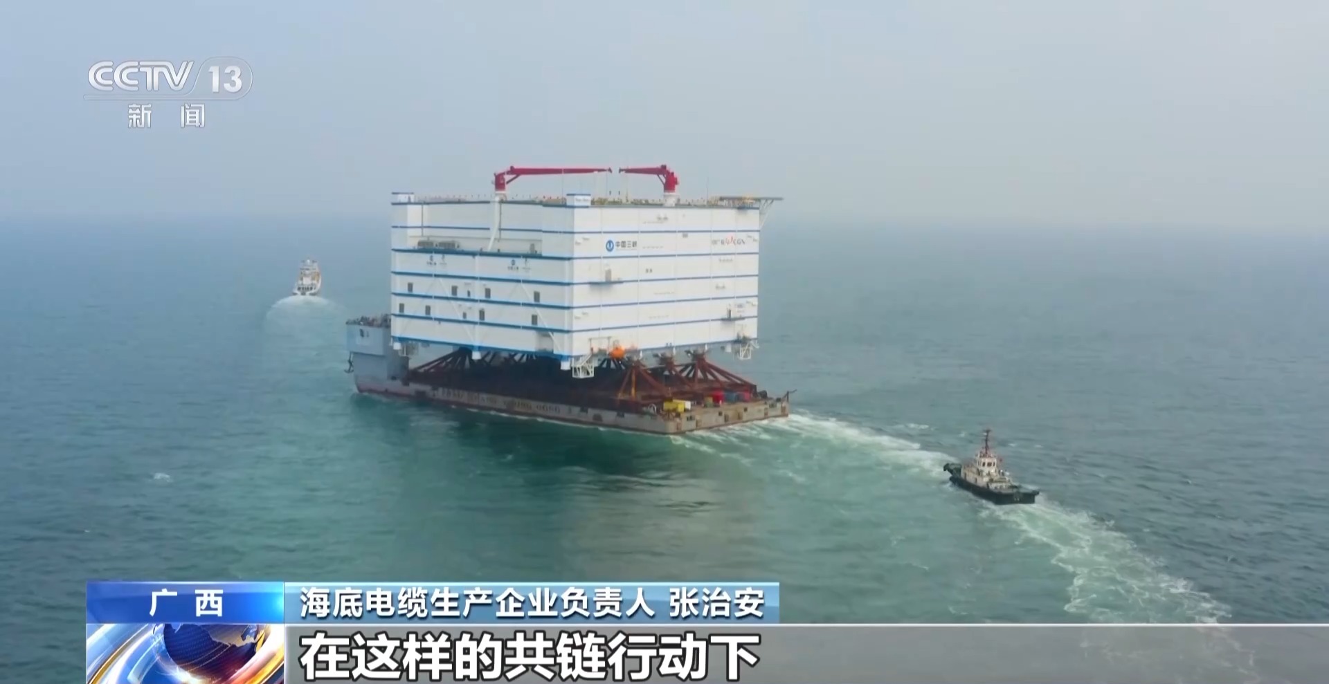 海底电缆生产企业 张治安:在这样的共链行动下,比如说在高端的材料方面,我们会与石化领域的上游企业共同研发,在深远海的高端附件方面,我们会和这个领域的高校加强合作,提供更长、更深、更远的交直流转换产品。