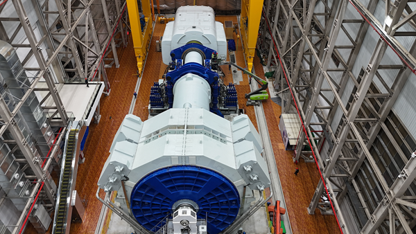 原创性提出了适用于大差异风电机组轴系角度的传动链轴线角度调节技术,攻克了大容量电网模拟装置复杂谐振控制、并网条件工况模拟和风电宽频特性测试等技术难题,能够真实可控地复现海上风电机组面临的复杂极端自然环境和电网环境。成果于2024年12月在福建福清建成投运,可开展25兆瓦级风电机组全工况模拟试验,填补了我国在大型海上风电机组地面试验系统及并网试验等技术领域的空白。