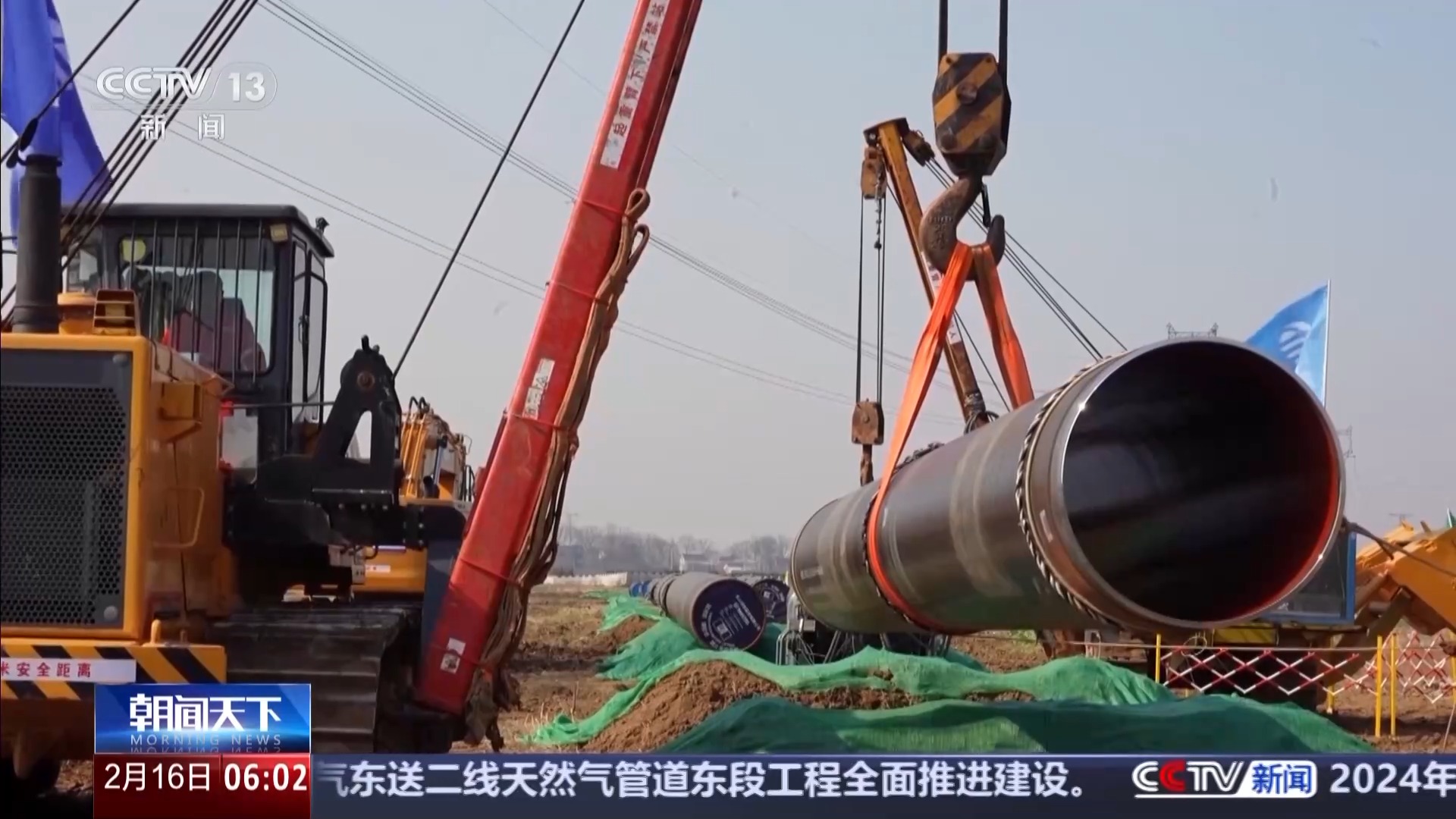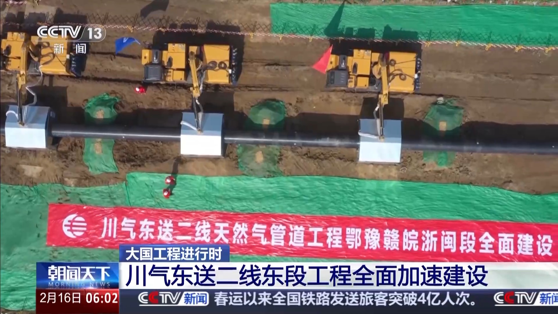总台央视记者 张伟:这里是安徽省安庆市怀宁县川气东送二线施工现场,随着川气东送二线管线最长的省份,安徽省首段管道的焊接完成,川气东送二线东段工程在湖北、浙江、安徽三省全面加速建设。