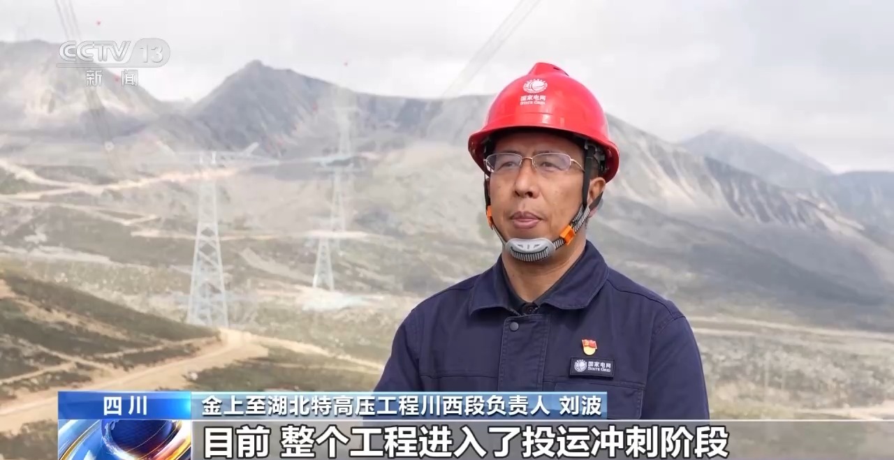 金上至湖北特高压工程川西段负责人 刘波:目前,整个工程进入了投运冲刺阶段。我们通过人工上塔走线加无人机飞巡相结合的方式,进行输电线路的验收和缺陷消除工作,预计6月底前验收完全部线路。