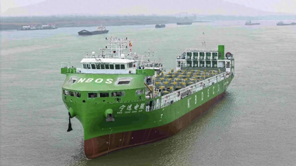 2月1日,全球最大、国内首制万吨级纯电动智能海船——由江西江新造船有限公司制造的740TEU纯电动敞口集装箱船“宁远电鲲”号,在全面完成全船内装、各设备安装调试、系舶实验调试报检后,在江西湖口县解缆离厂海试。