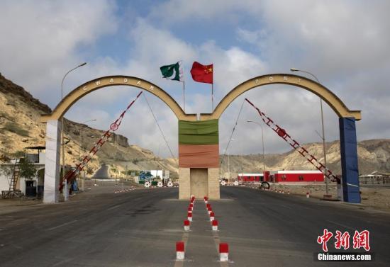 瓜达尔港出入口的拱门。瓜达尔港是阿拉伯海沿岸的一座天然不冻良港,也是中巴经济走廊的南端起点。瓜达尔是巴基斯坦通往波斯湾和阿拉伯海的大门,距离霍尔木兹海峡仅400公里。中新社记者刘关关摄