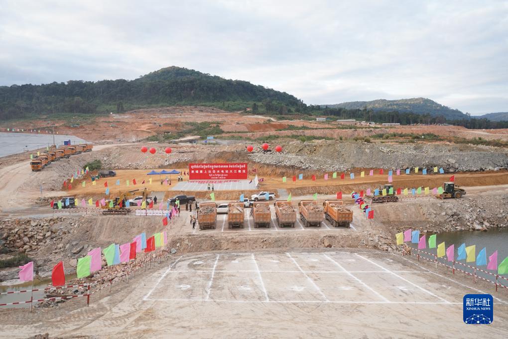 这是11月30日在柬埔寨戈公省特莫邦县拍摄的上达岱水电站截流现场。新华社发(李莱摄)
