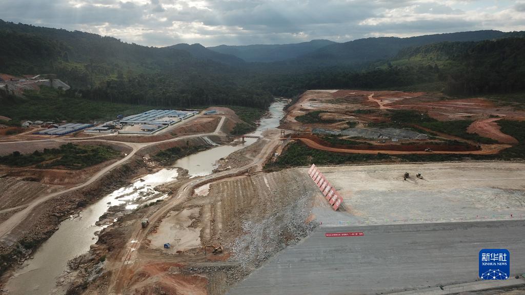 这是11月29日在柬埔寨戈公省特莫邦县拍摄的上达岱水电站施工现场(无人机照片)。新华社发(廖泓清摄)