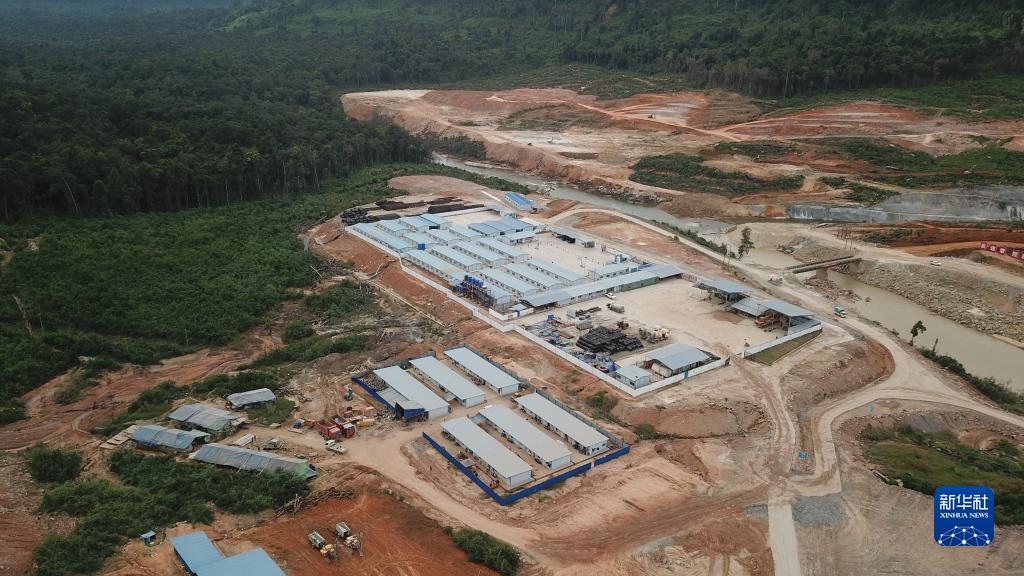 这是11月29日在柬埔寨戈公省特莫邦县拍摄的上达岱水电站施工营地(无人机照片)。新华社发(廖泓清摄)