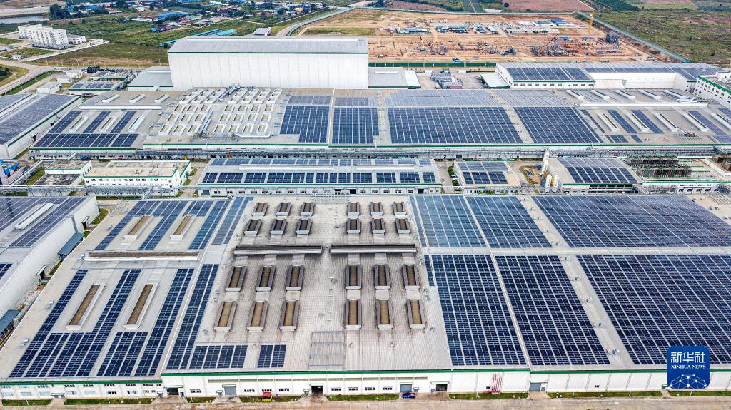 这是11月7日在泰国春武里府拍摄的工厂屋顶光伏发电项目现场(无人机照片)。