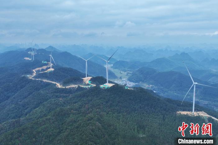 12月15日,在中越边境的广西崇左市天等县宁干乡,天等把荷风电场首批机组并网在即,第二批机组正在加紧建设,工人们正在吊装风机。周星亮摄