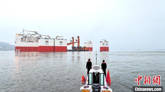 搭载14艘工程类船舶的全球第三大半潜船中国籍“华瑞龙”轮3月3日从福建省宁德港灶屿锚地启航,驶往共建“一带一路”国家几内亚。