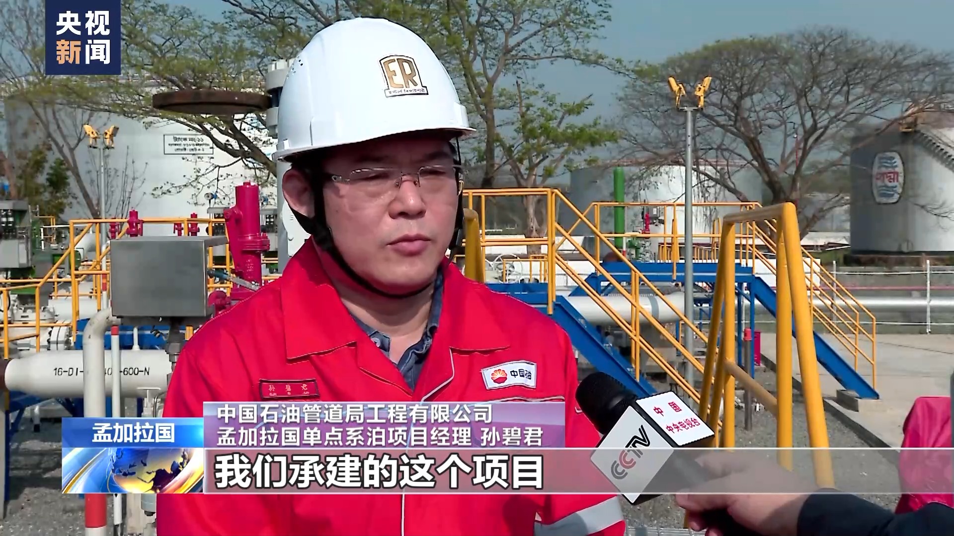 中国石油管道局工程有限公司孟加拉国单点系泊项目经理 孙碧君:我们承建的这个项目是作为“一带一路”倡议在孟加拉国首批落地的重要油气储运项目,将极大缓解当前能源紧张局面,是孟加拉国新的能源大动脉。